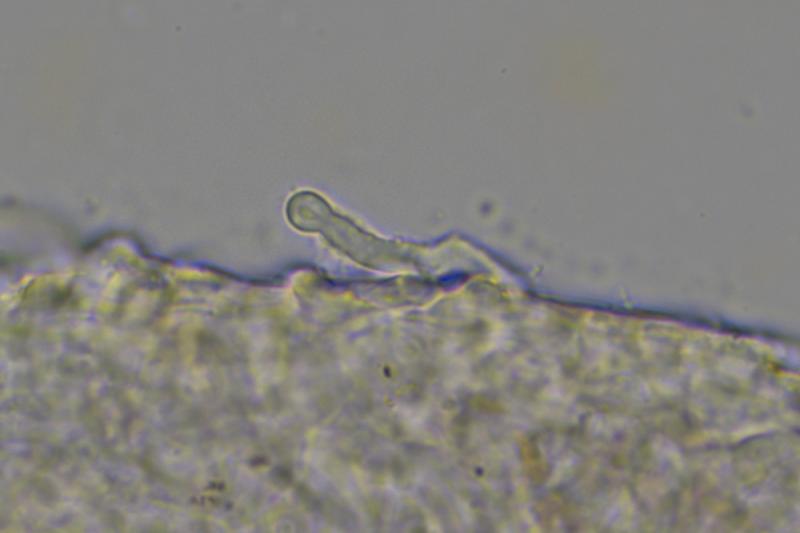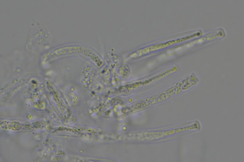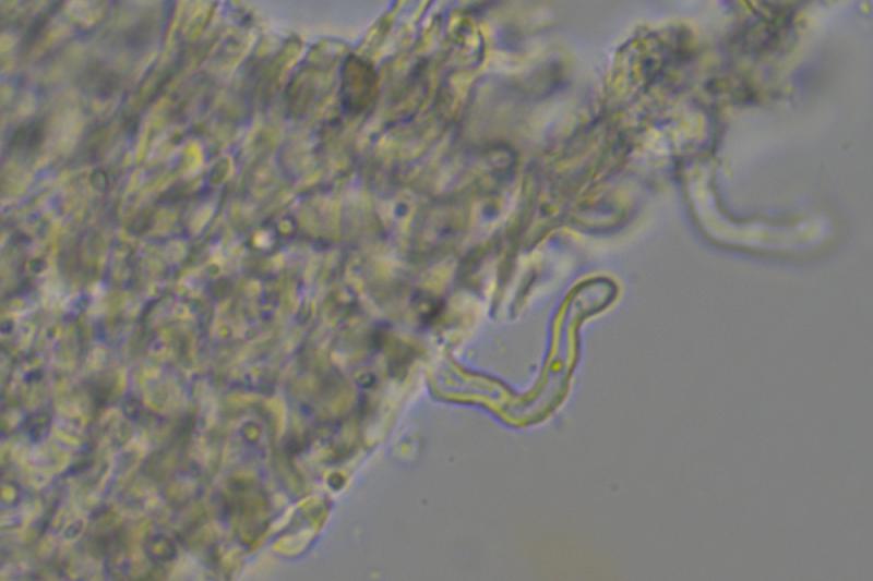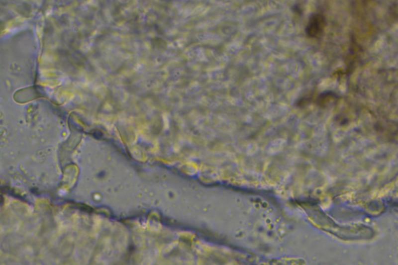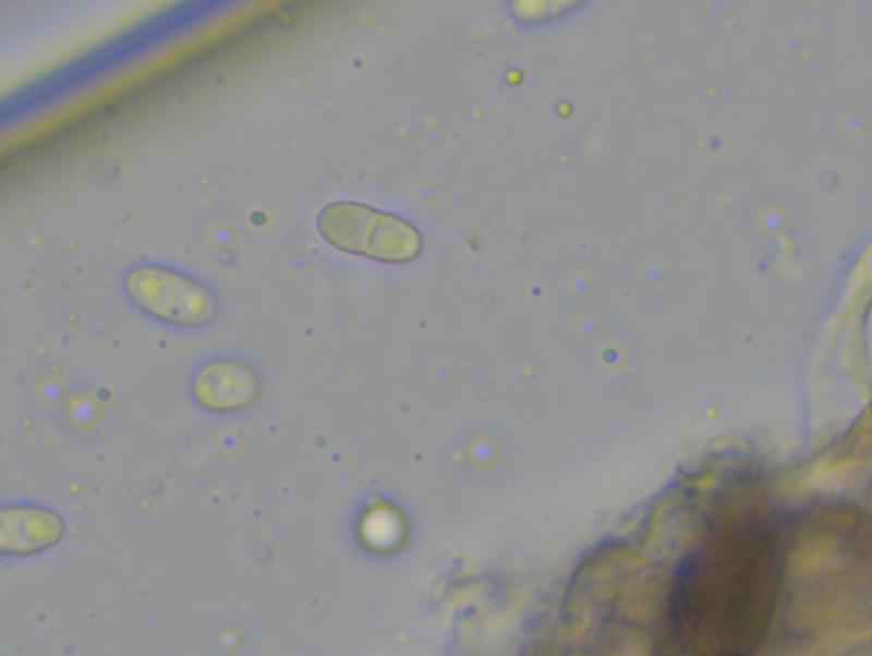 Micro: Asci cylindrical, 30-37 x 3.5-4 µm, apically flattened, 8-spored. Spores 5-6.5 x 2.4-2.8 µm, two-celled, hyaline, finely verrucose (difficult to see).