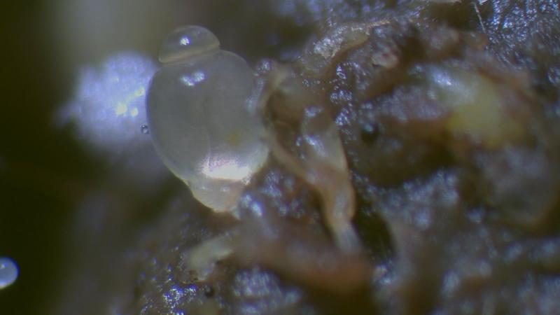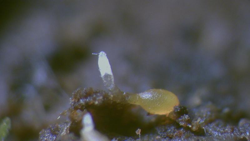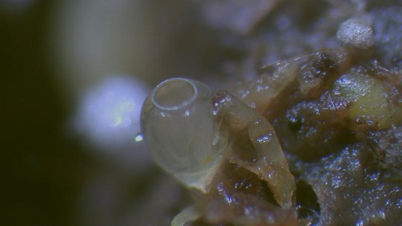 The fruitbody is hyaline in contrast to the one from P. kleinii which has an orange colour. (Photo 4 & 5)