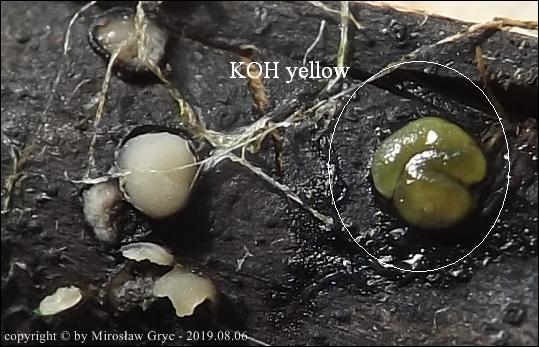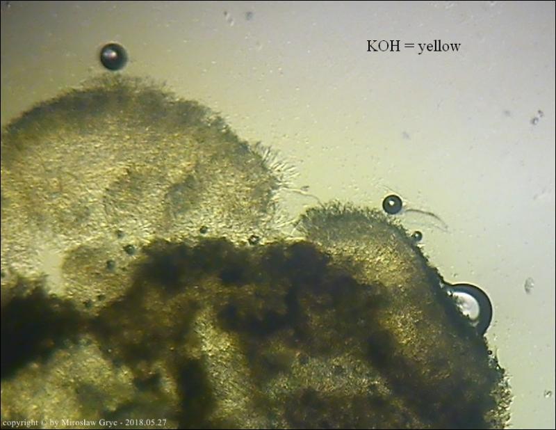 Not all Molisia KOH +, have strongly koh reaction like rosea-prunicola, and as Mirek writes, microsocpic observation is essentia. But some reactions are fleeting and sometimes the yellowing of paraphyses contents disappear immediately. It's better put the phragment on slides in Water and better to add the koh on the edge of the coverslip...
