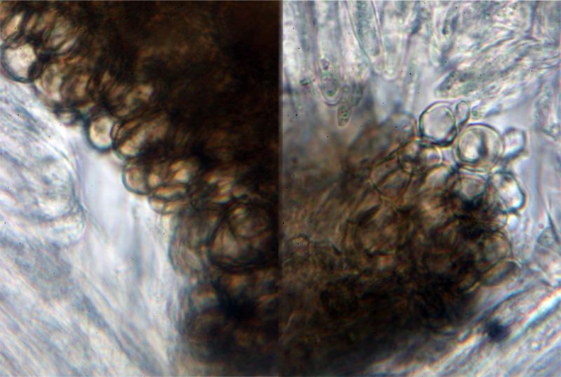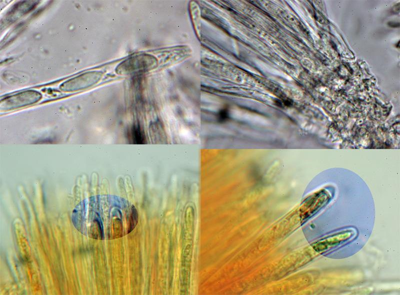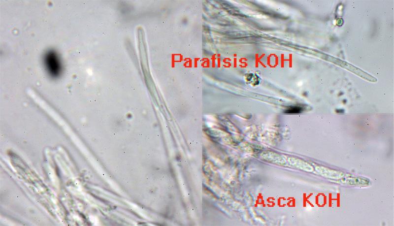Alors, c'est en macroscopie, sous la loupe binoculaire, qu'il faut observer la réaction des paraphyses. Vous plongez un morceau de l'ascome dans le KOH 5%, et vous regardez sous la loupe si ça jaunit ou pas.