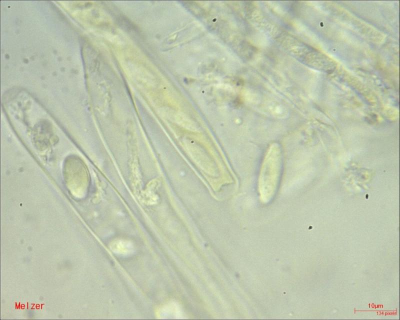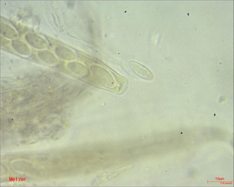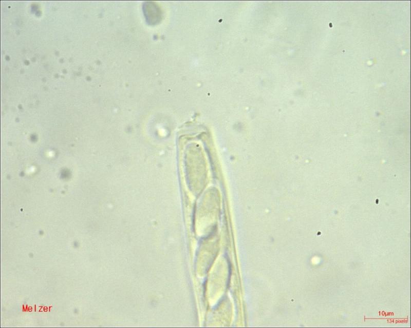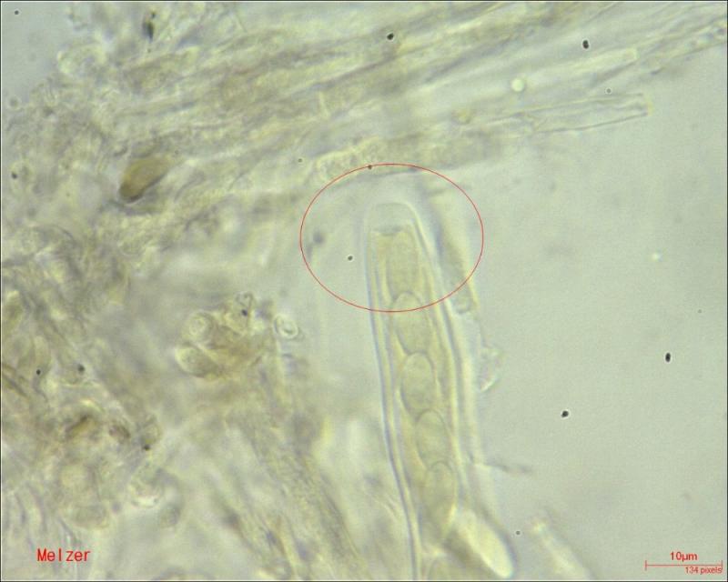 However, I did the test with Melzer again and let the material soak a little longer. I think I see a very small reaction in the ascus top.