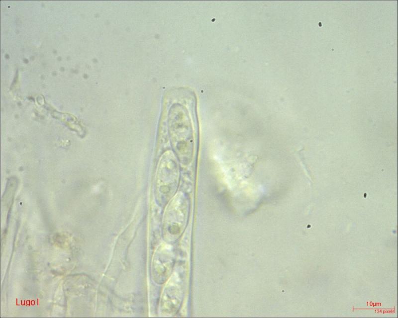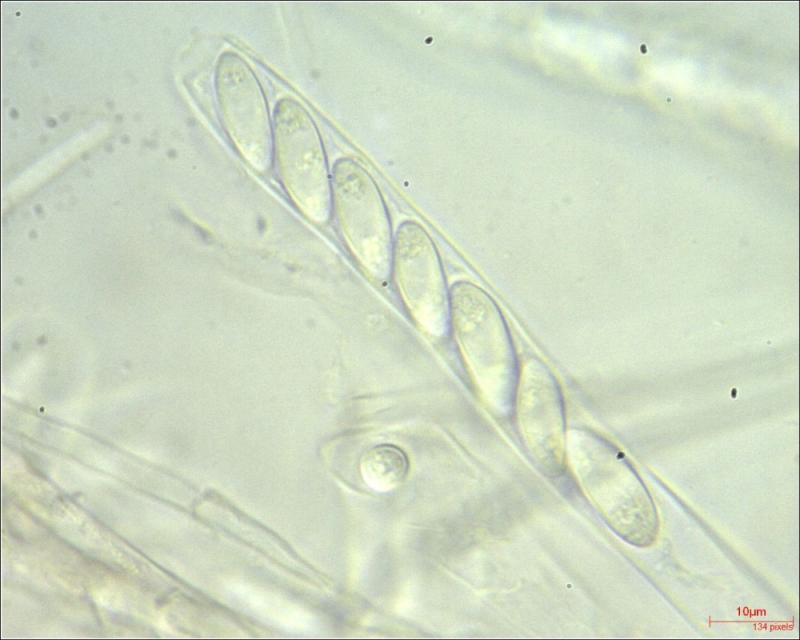 Asci: J-; uniseriated, 8-spored