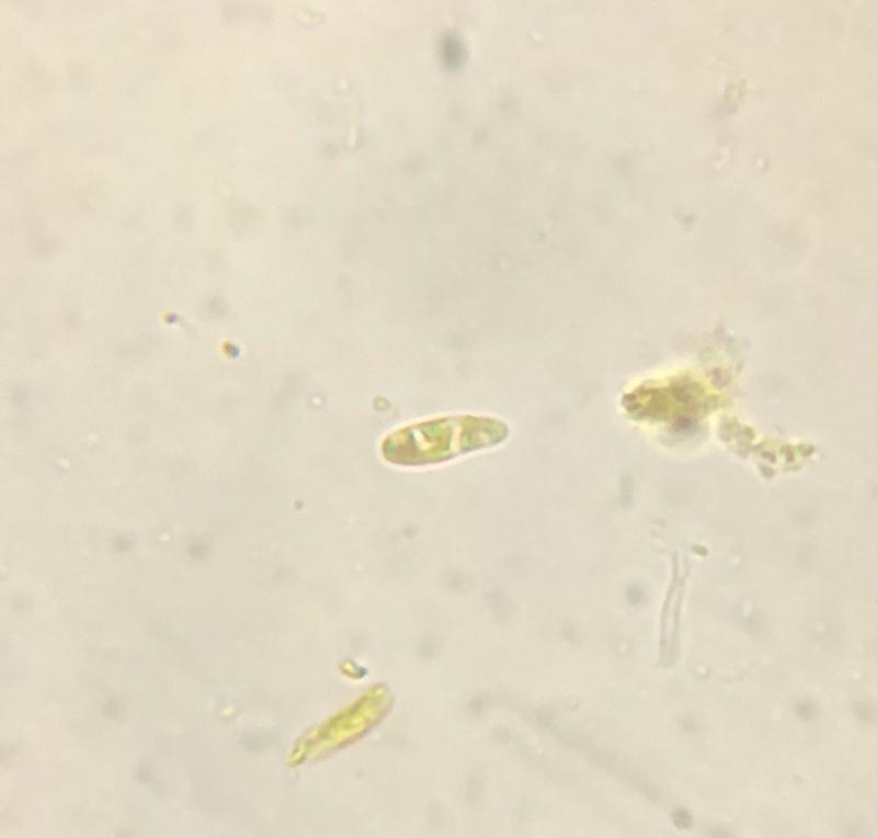 Spores 10-11 x 3-3,5 um with some olidrops. some spores twocelled. Some sporeends react red with lugols as in formosum, maybe all but hard see.