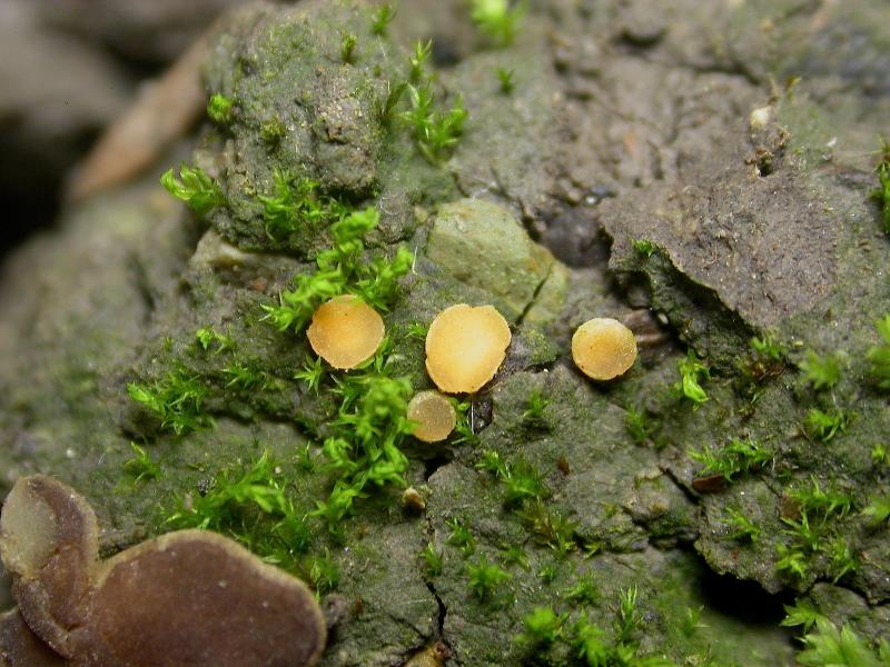 salut a tous,anybody out there, who has found Cupulina ascophanoides with such a strong yellow colour? i'm a bit confused by that. micros fit very well: spores with cluster of little guttules at the poles, 19 x 11-12; hyalin hairs from 76 to 320; J-. maybe i've overlooked something different? but perhaps its just variation in colour ...