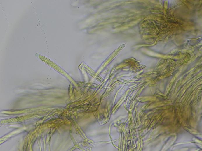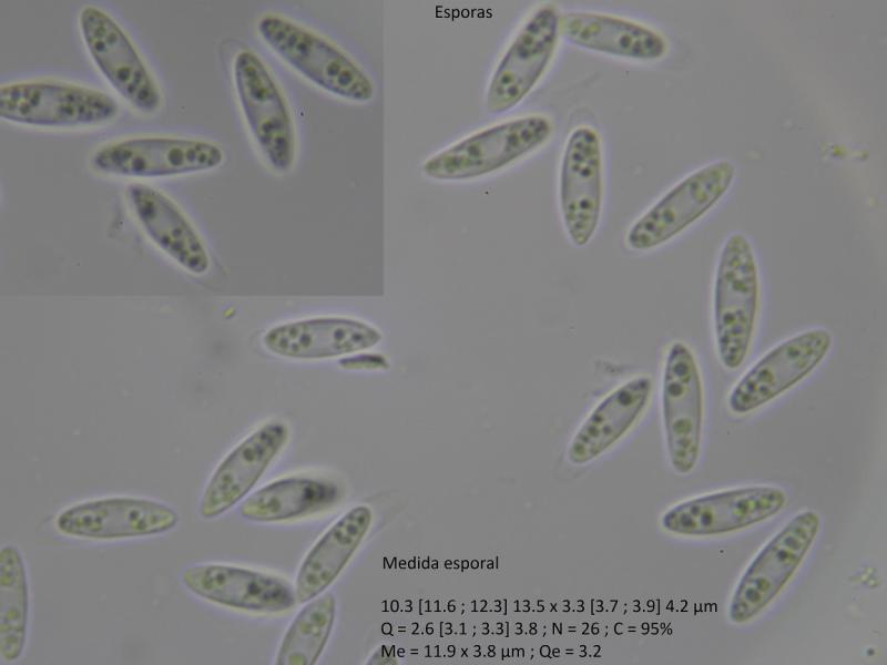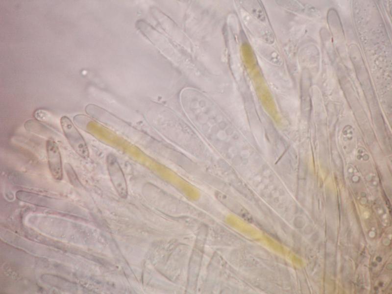 Curro, ¿has visto esporas marrones en tus ejemplares? Veo diferencias a nivel de medias esporales y de los ascos. Y también me sorprende la anchura en los ápices en las paráfisis de tu especie en Rhamnus (me refiero a la primera que origina este mensaje) ya que indicas 6-13 pero no veo tan grandes en las imágenes...