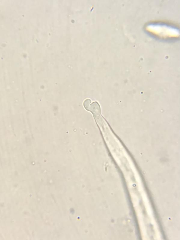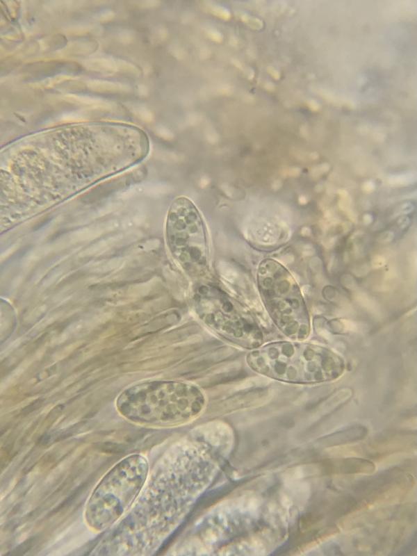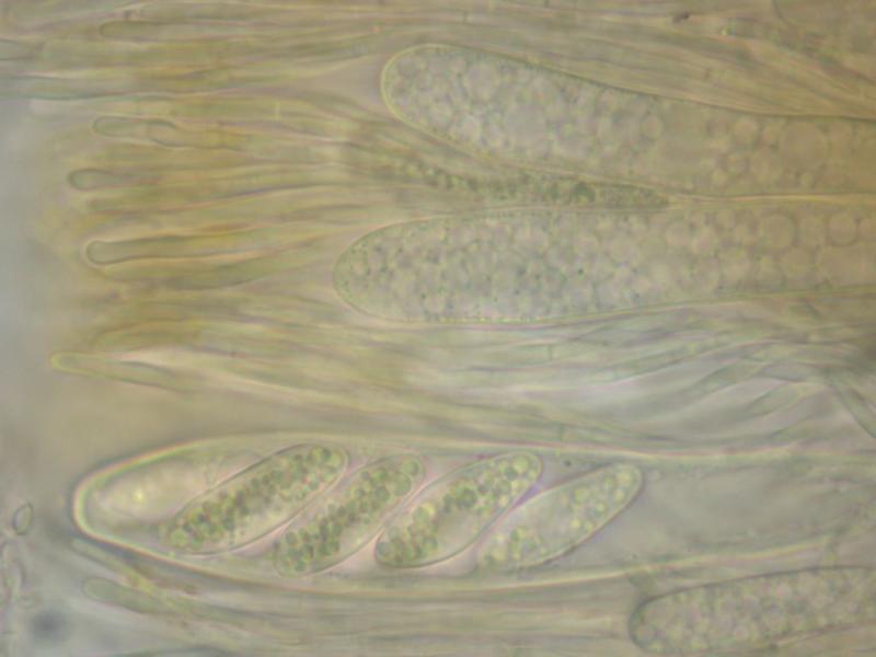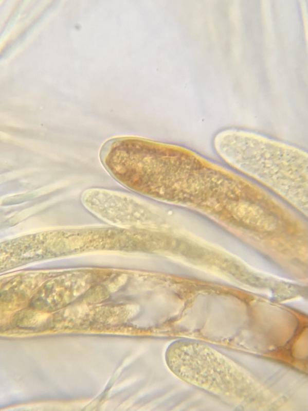 Hi! Spores 22-25x 9-10.5um some one septate But most onecell. Older dead ones lightbrown. No reaction i Ascitopp in lugols. parafyses septate.