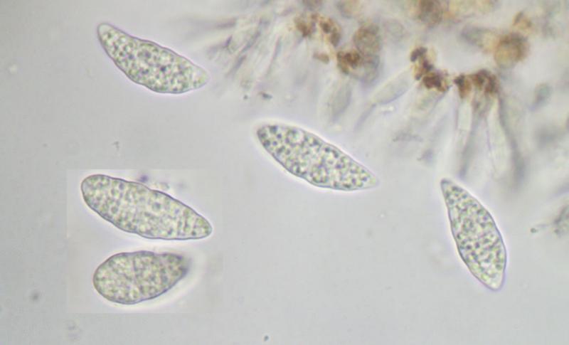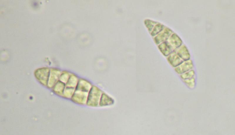 Ascospores : 19-24 x 6,5-8,5 µm, Q. 2,3-3, fusiformes, avec 4-7 cloisons transversales et 1 cloison longitudinale, hyalines, garnies de guttules, lisses.