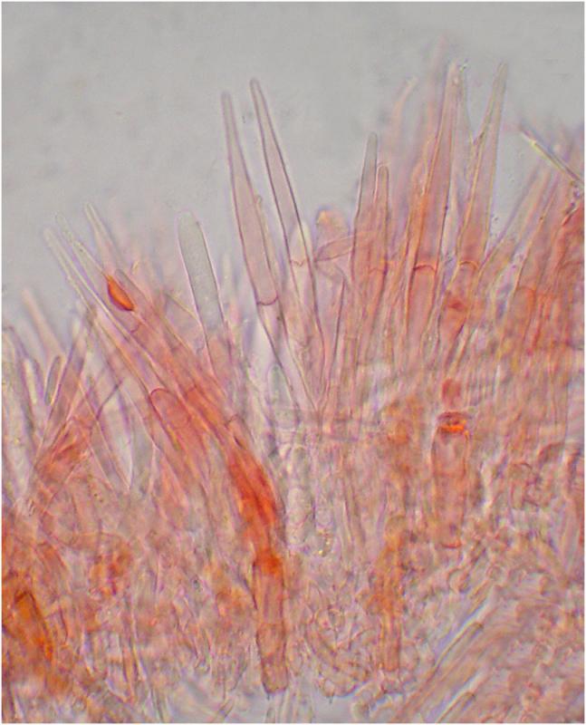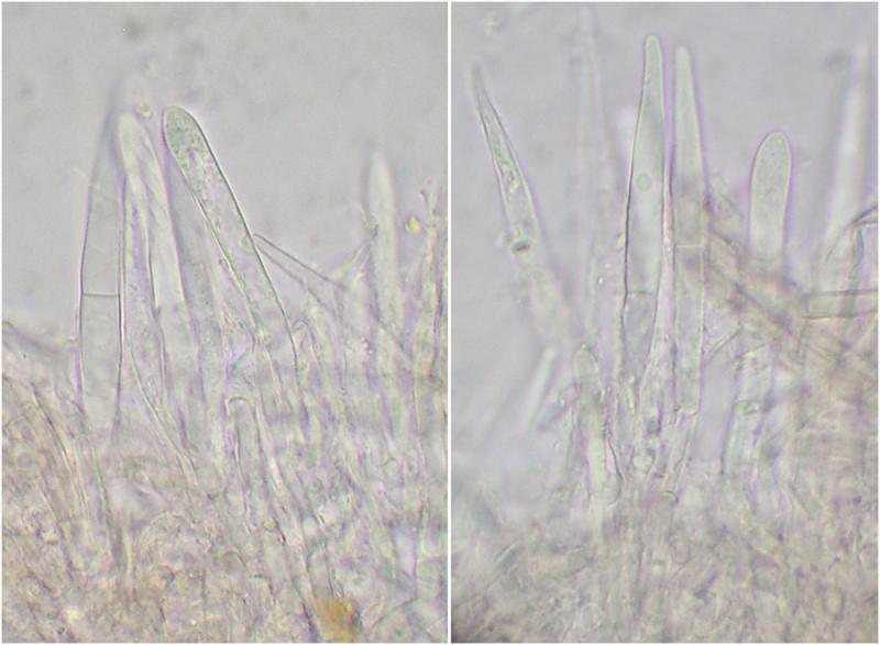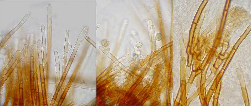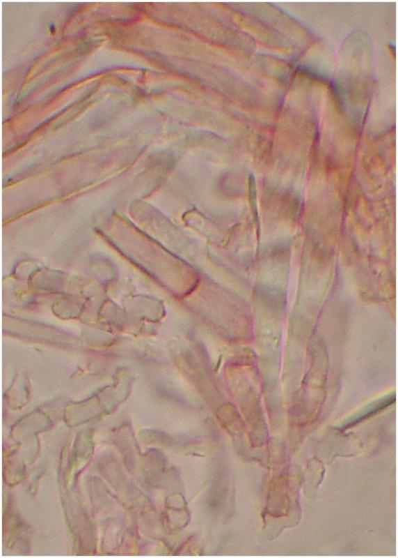 Paráfisis septadas, fusiformes, de hasta 7.5um de ancho.