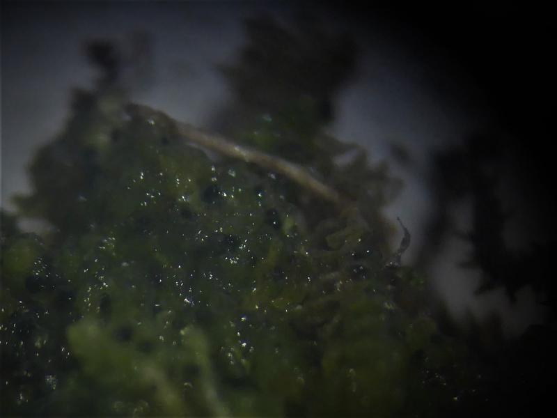 Re : pyrenomycete on algae on lawn of foliose liverwort on rock