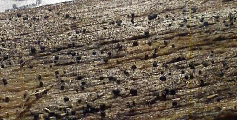Now I remember. Due to the fact that it was very dark in the forest, I decided to go to its edge where there were only deciduous trees. However, I dressed too poorly and I got cold quickly due to the strong wind, so I quickly decided to go home through the forest, but I stopped at a group of fallen spruces. I took a sample of Valsa from its branch, but I noticed that these mushrooms were growing at the fracture site. Without thinking, I threw the piece of wood into the box and quickly went home. That day I collected quite a lot of samples, but without photos and notes, at home I had a problem with reminding where the collection came from.