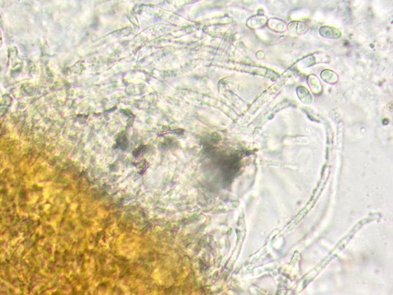 Eh bien, Bernard, ta proposition convient parfaitement, inclus l'ornamentation des hyphes. J'avais exclu cette possibilité pensant que cette espèce n'était que lignicole.