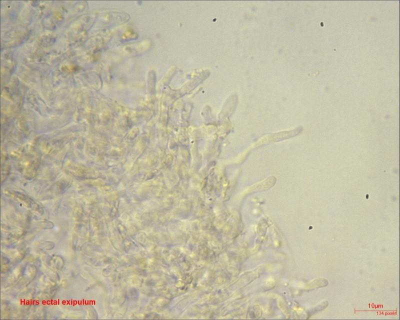 Yes, this is H. conscriptus. A species which Dennis 1956 could not separate from H. calyculus which has larger spores with a high oil content.