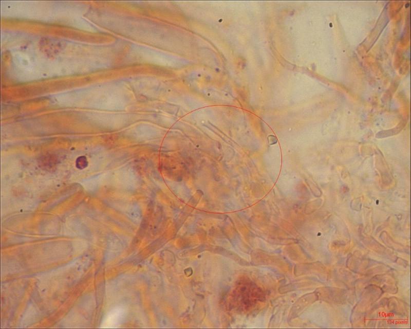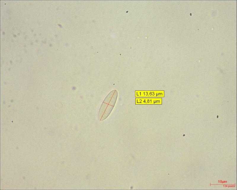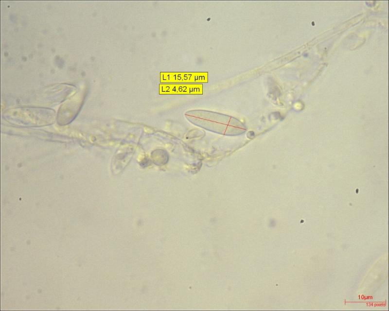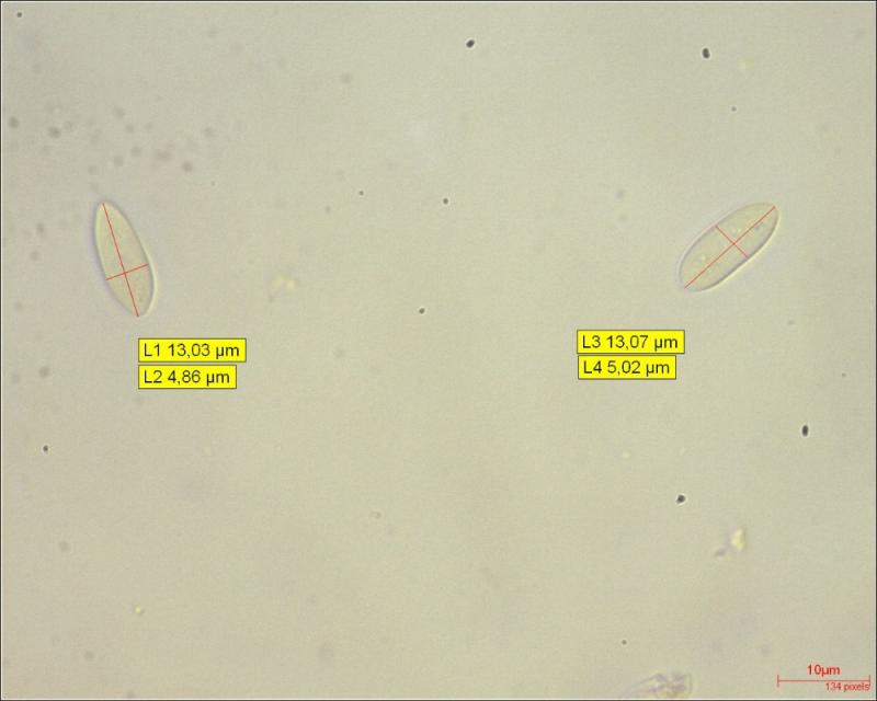 Spores (N = 9) :( 13.03) 14,17 (14.65) x (4.61) 4.84 (5.37)