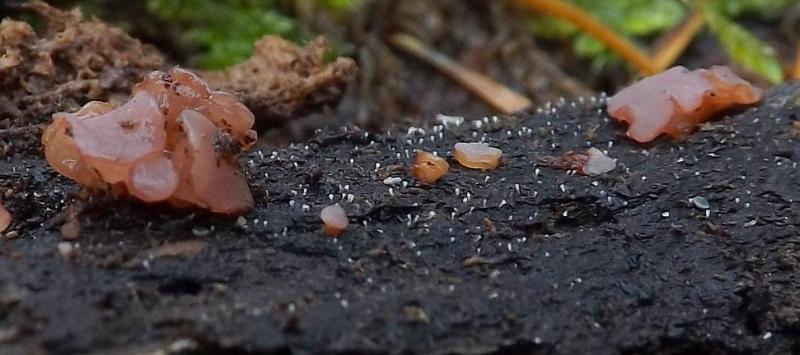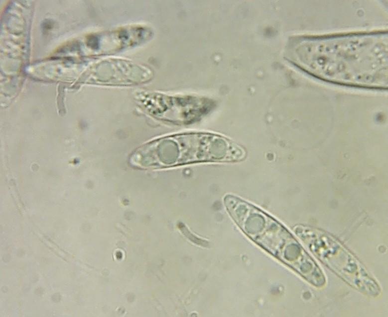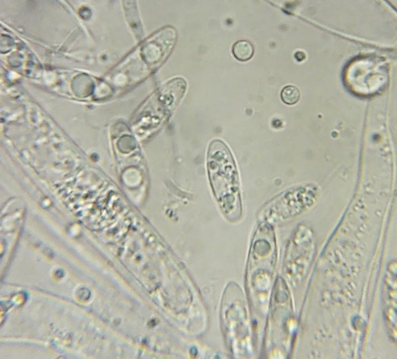 Only a few times I looked at Ascocoryne cilichnium under the microscope and maybe that is why I did not associate this collection with Ascocoryne because it has different spores.
