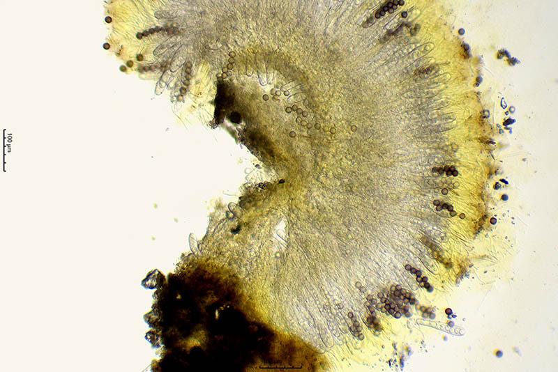 De hecho, el tamaño de las esporas es un poco pequeño, pero está de acuerdo con Nicolas para esta hermosa especie. Puede ser que hayan pasado animales por este lugar (orina) para permitir la llegada de este hongo.