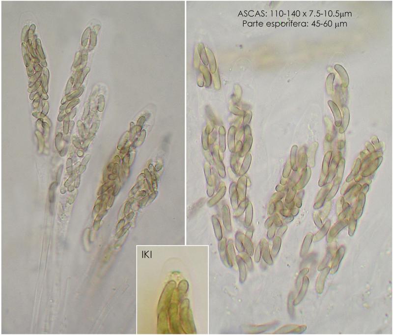 Las ascas son multiesporadas (creo que unas 24 esporas), el aparato apical es IKI+.