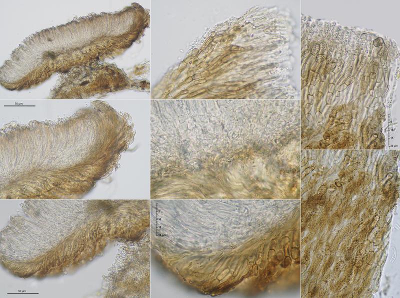 I think it fits well with the Karsten's and Carpenter's concept of Cyathicula complicata with IKI negative asci, although Dennis describes it as a non-dark fungus with asci IKI blue.