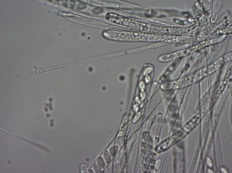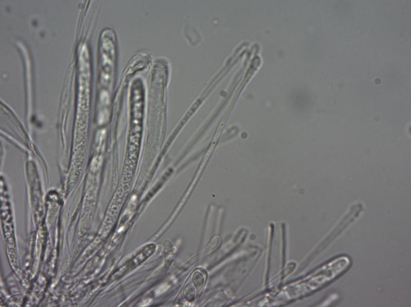 So the living paraphyses do not contain refractive vacuoles. The substrate is not really clear to me. Could it be that there were catkins of a Salicaceae or Betulaceae? The characters would fit Ciboria caucus or amentacea.