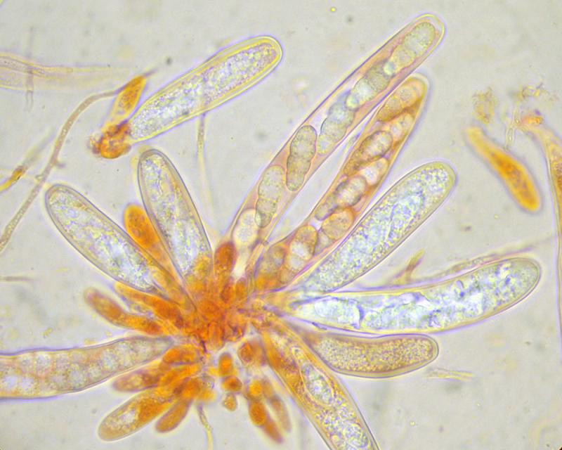 Asci 8-sp, without reaction in IKI.