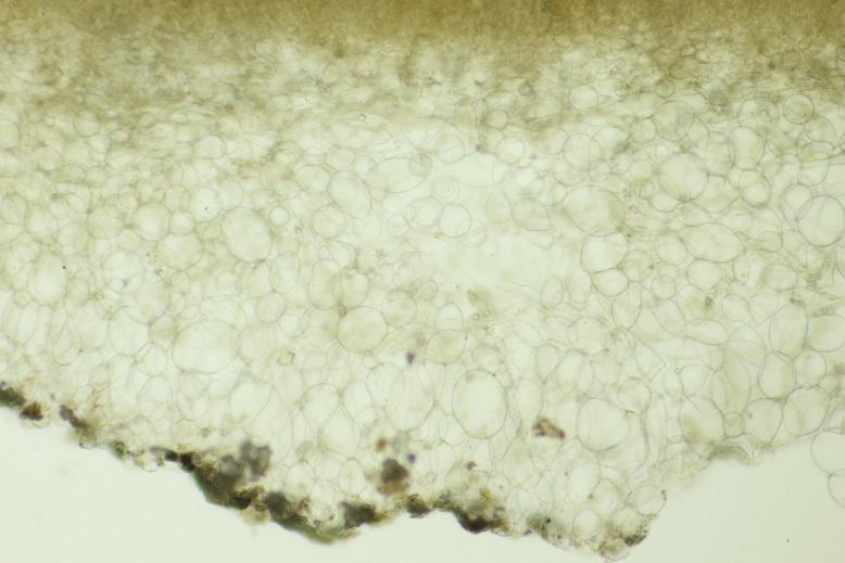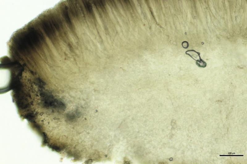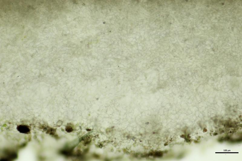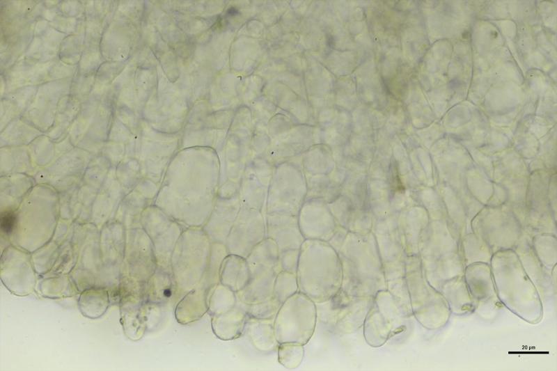 Excípulo ectal te textura angularis y E. medular de textura intrincada.
