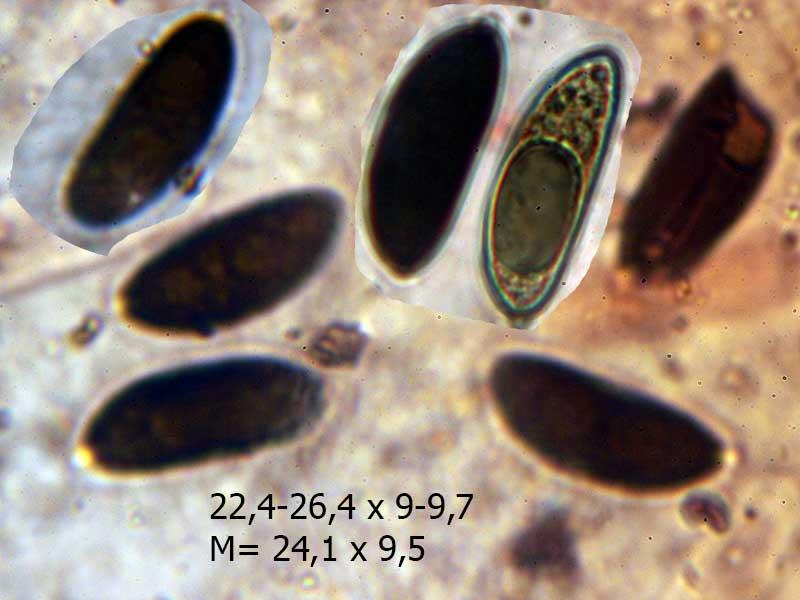 Tend to agree with Lothar. Rosellinia aquila has more rounded ends as showing here, others tend to be more pointed and the only one I know of that has small appendages at each end. You should be able to see a staright germ slit also on some, normally seated on a darkened subiculum.