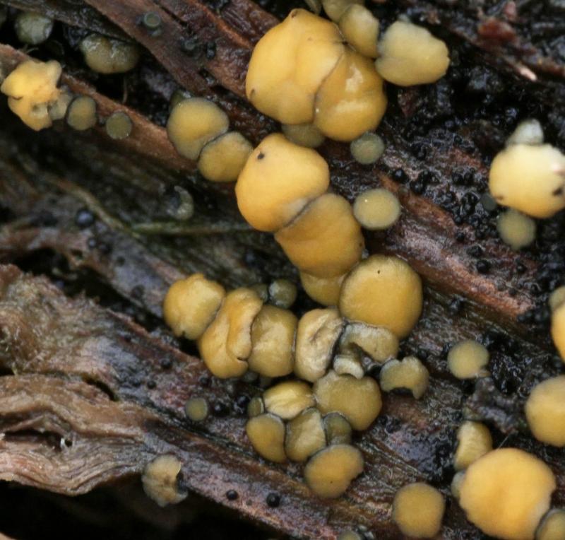 That's interesting! I only received dried apothecia, unfortunately. If Bisporella, then the excipulum is by def. gelatinous? Any way I can verify further? I'll see if I can find Graddon's original description of the species (Calycella f.), unless you can provide.