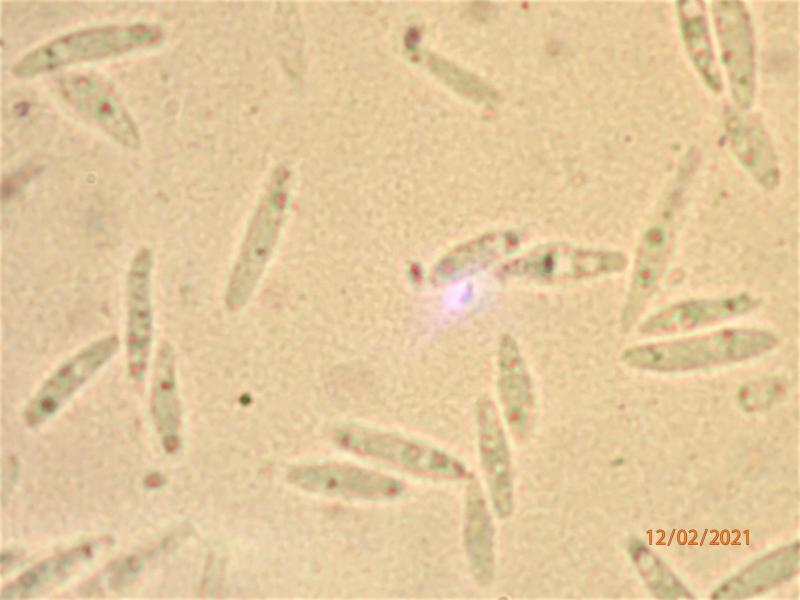Here are two photos of living spores in water, showing LBs.