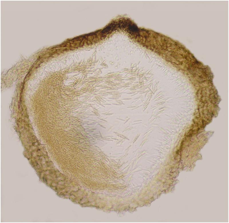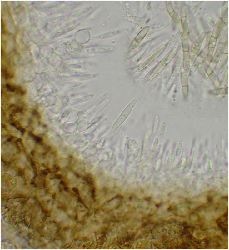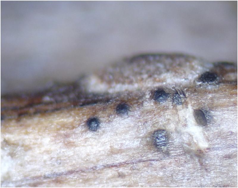 Picnidios de unos 300um de diámetro creciendo sobre Sambucus nigra.