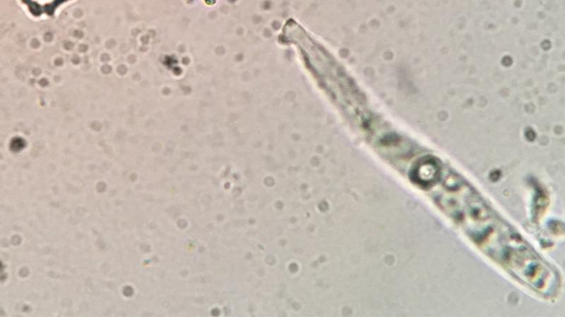 The spores are septate inside the living (!) asci which is quite unusual in Hymenoscyphus s.l.