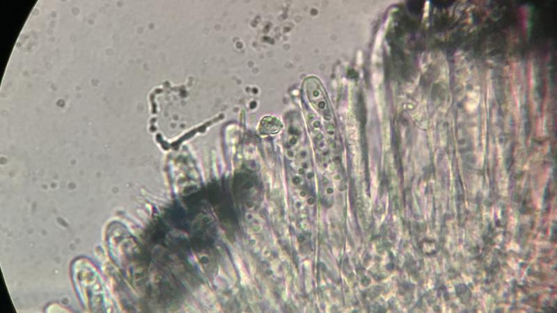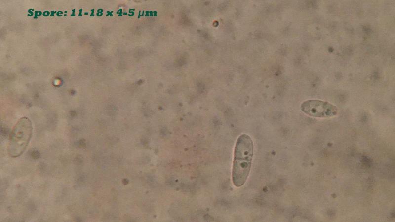 Ascospores: 11-18 X 4-5 µm , with a septum, when inside the asci and outside. Hyaline and almost always with two small guttules. IKI + not very pronounced.Â