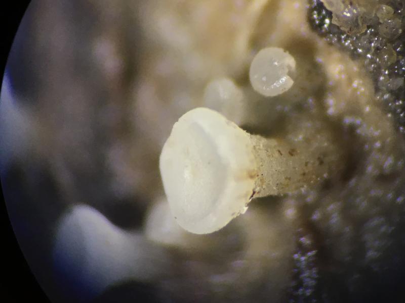 Apothecia: Withe, somewhat traslucent , disc-shape.