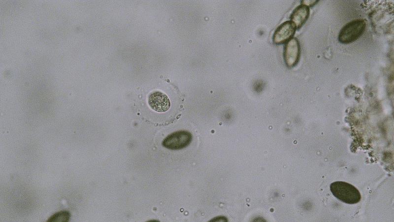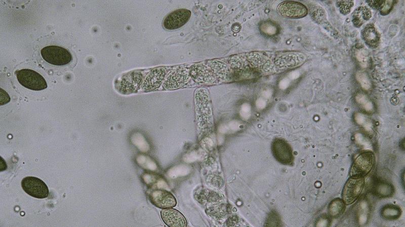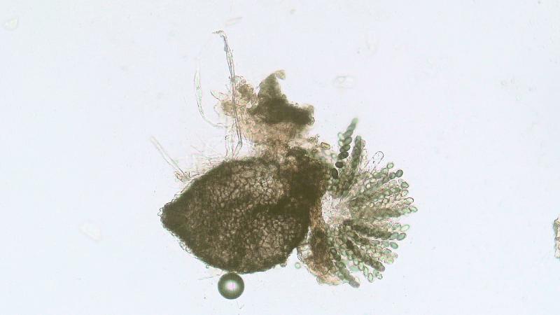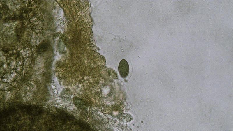 Spores: uniseriate; 18.5x10.8 um, surrounded by a gelatinous sheath expending into a circular sheath when in contact with water.