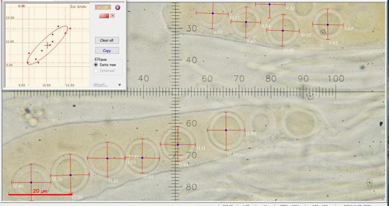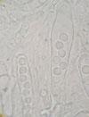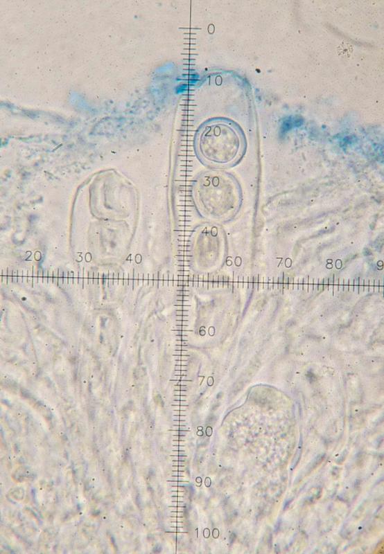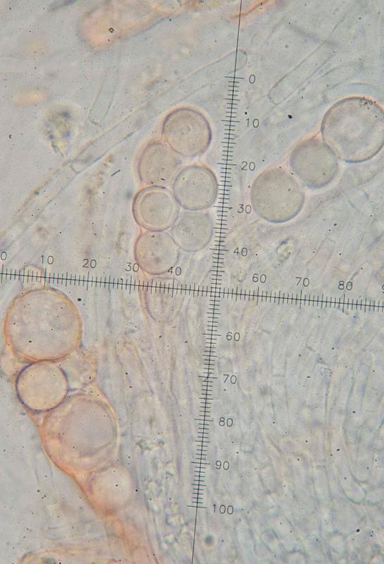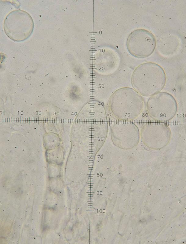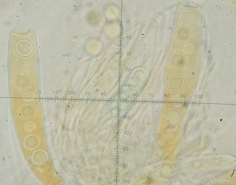 Habia pensado tambien que podria tratarse de algun tipo de Ascobolus de los que presentan ascosporas esfericas y son hyalinos (A.brassicae, fundamentalmente por el tamaño esporal) , pero lo he dejado esporulando varios dias y he vuelto a hacer mas preparaciones a todo tipo de fructificaciones y no he visto ningun tipo de ornamentacion tÃpica de esta especie en ninguna de ellas.Siempre que he recogido A.brassicae se aprecia muy pronto la ornamentacion tipica que presenta.