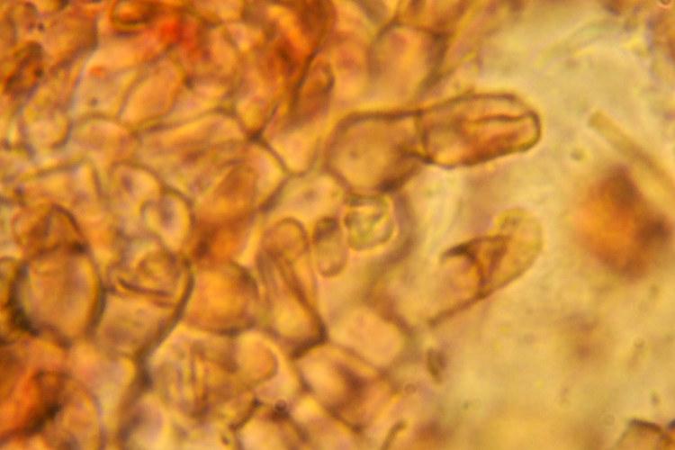 Asci 8-spored, without croziers, IKI negative. Paraphyses with a swollen tip and a VB. The spores measure 10.4 - 12.1 × 4.4 - 5.1 microns.