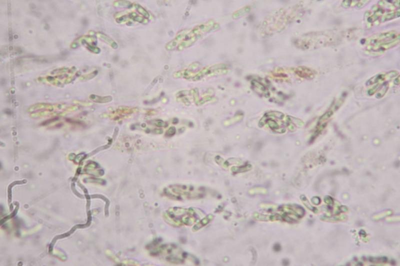 Spores allantoides 5 X 2 µ avec une guttule à chaque pôle.