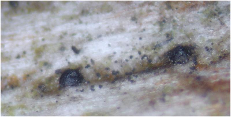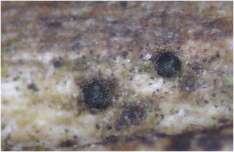 Son ascomas globosos-subglobosos, negros,semiinmersos, ostiolados de unas 200um de diametro. Crecen sobre una rama descortezada y caida de planifolio (posiblemente castaño), lo hacen de forma dispersa.
