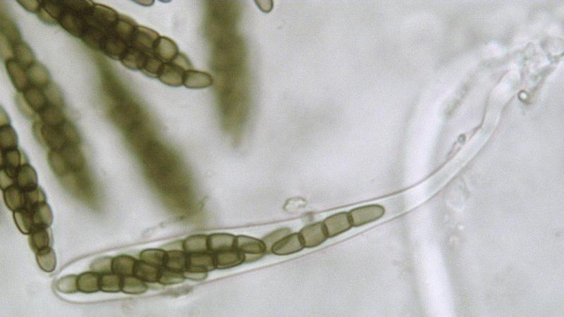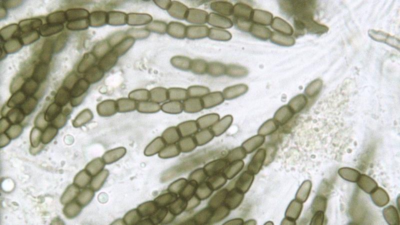 Spores: 4-celled; 18.9-19.4x2.6-3.6 um