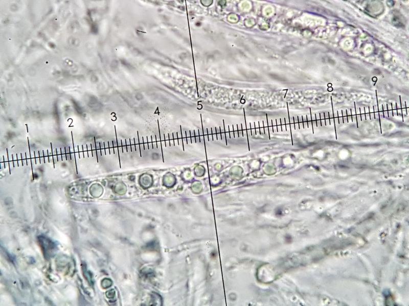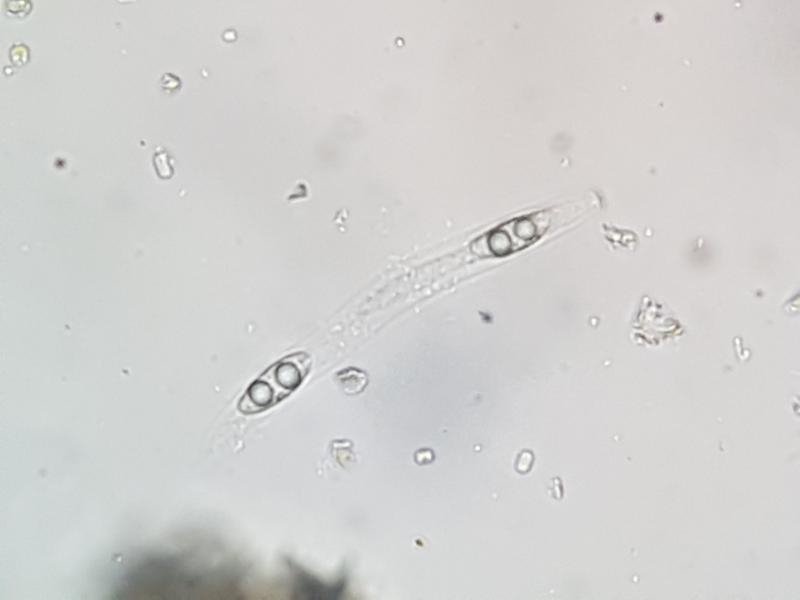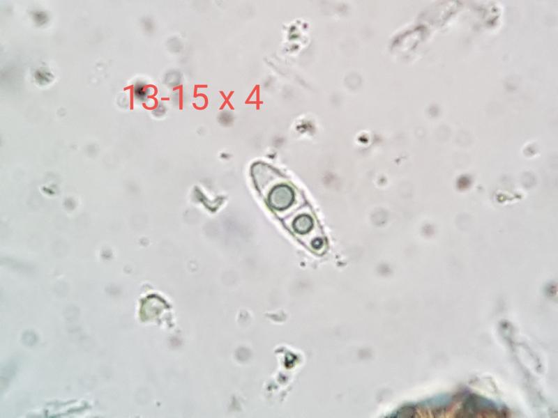 Spores 13-15 x 4, usually 1-septate. Not 100% sure what kind of konidia are present but I believe that I saw konidia from Brachysporium.