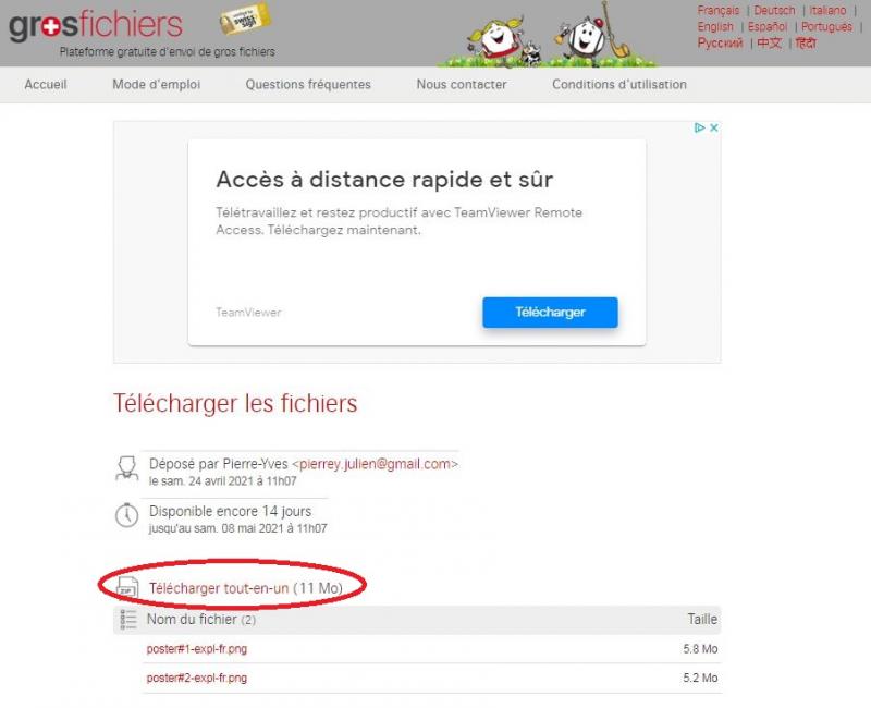 Et en ce qui concerne Grosfichiers, c'est absolument gratuit ! Le lien mène directement sur une page de téléchargement, il suffit de cliquer sur Télécharger tout-en-un :