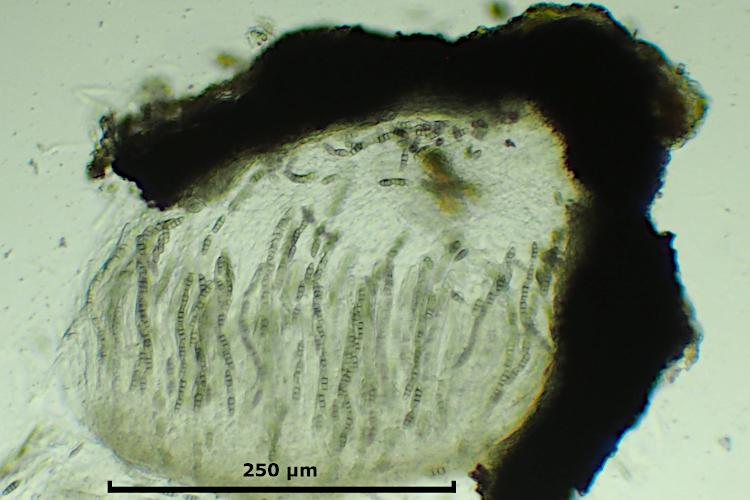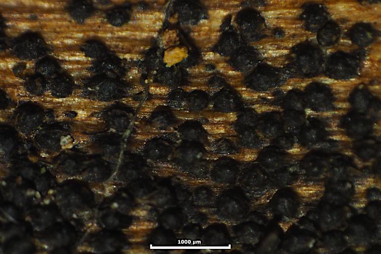 Looks like classic Melanomma pulvis-pyrius. See: https://www.researchgate.net/figure/Melanomma-pulvis-pyrius-A-B-Ascomata-on-substrate-C-Ascoma-in-longitudinal-section_fig3_318410099