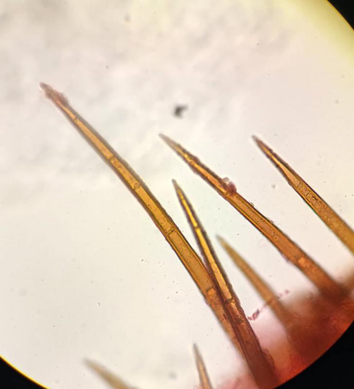 les poils marginaux sont raides et ont une longueur moyenne de 550µm et une base fourchue. Si vous avez des pistes....