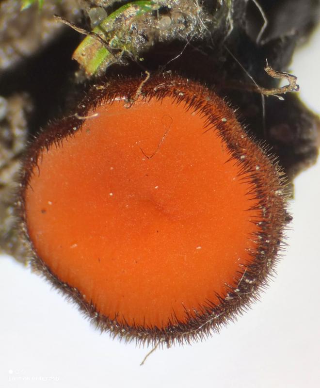 J'ai trouvé cette apothécie dans le Langonais (33) au pied d'un aulne glutineux sur un sol sablonneux détrempé. on est dans le genre SCUTELLINIA peut-être umbrarum...