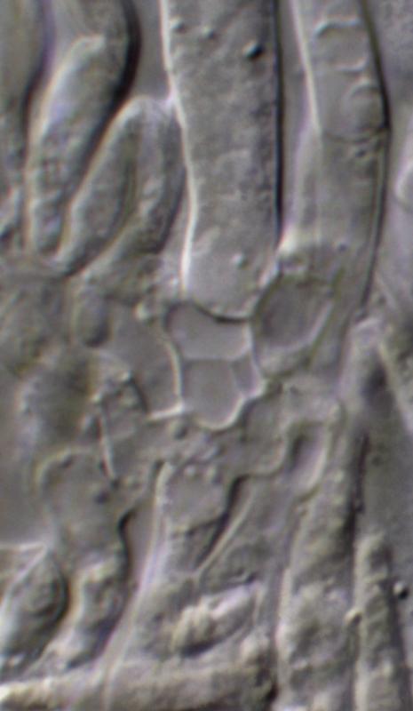 There was a slight hint of yellow to the extreme marginal hairs, but only slight. The ascus tip staining shown here is typical of all I saw. Although I only used Baralsche Löhsung this was always by feeding it into a water mount of living material and then watching for a reaction so "yes" to the same at lower concentration.