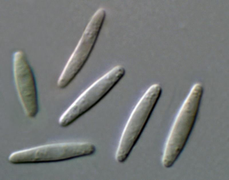Yes, this looks similar but has narrower spores: Droitwich Canal Reed Beds, Worcestershire herbaceous stem, up to 2mm diameter, sp. 10 - 15 x 1.25 - 2um.
