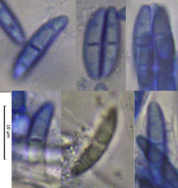 Asci 8-spored. Spores straight, frequently also more or less bent to allantoid, only 1-septate, finely longitudinally striate.