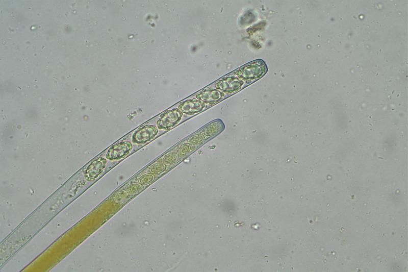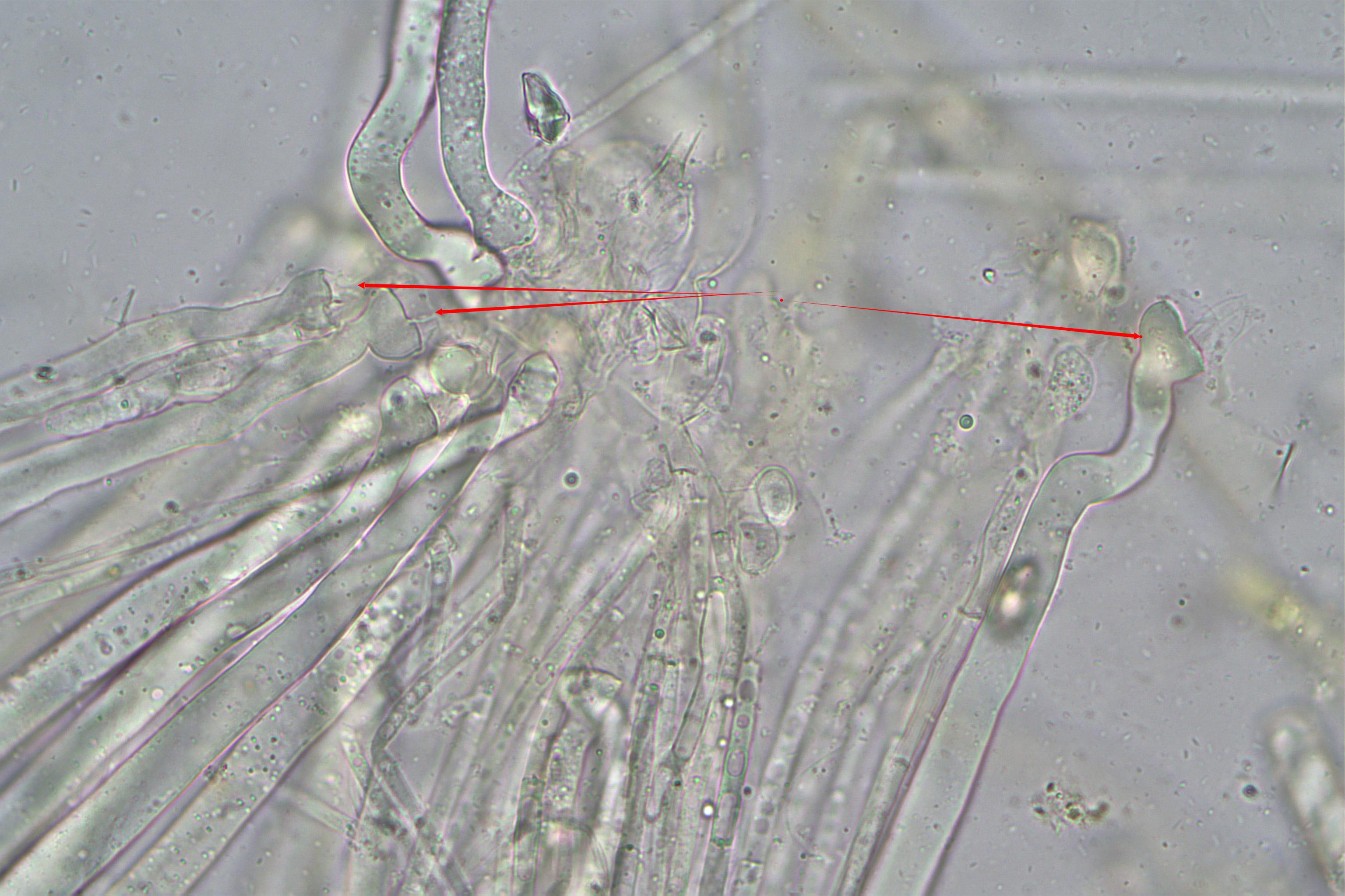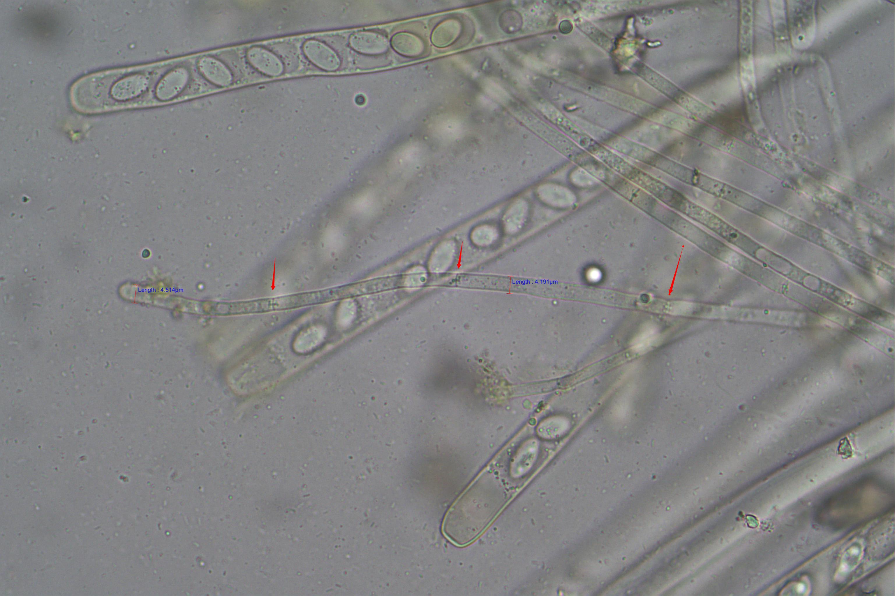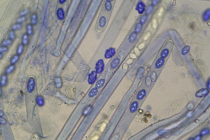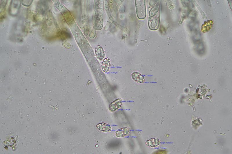 Spores: variously sized ridges, size without ornamentation 12.1-13.1 x 6.8-7.9um