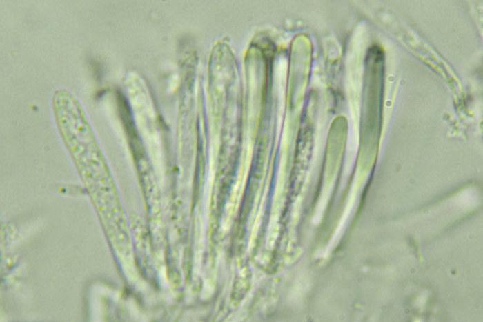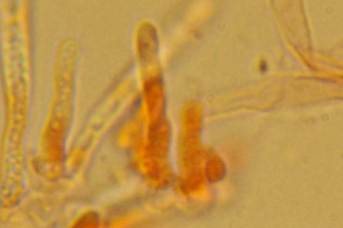 KOH+ yellow, pp rather wide and with VBs, croziers+. Spores: 7.4 - 10.1 × 1.4 - 1.8 µm.