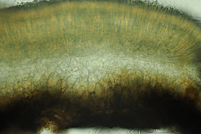 Good idea, Andreas, I only cannot estimate the "wax-yellow" colour of the disc in the type, which seems to be present already without alcali. But Svrcek wrote that ammonia caused a yellow reaction.