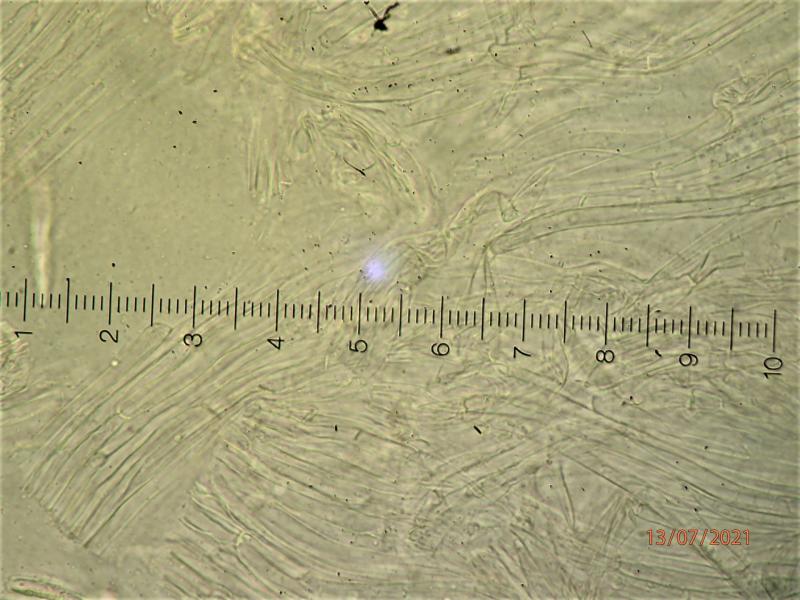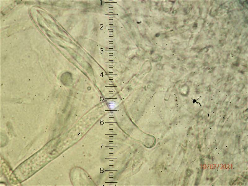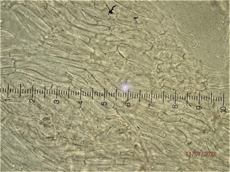 One would perhaps expect an Ombrophila like O. pileata with this macroscopy but the guttulate paraphyses (VBs) refer this fungus to Helotiaceae.