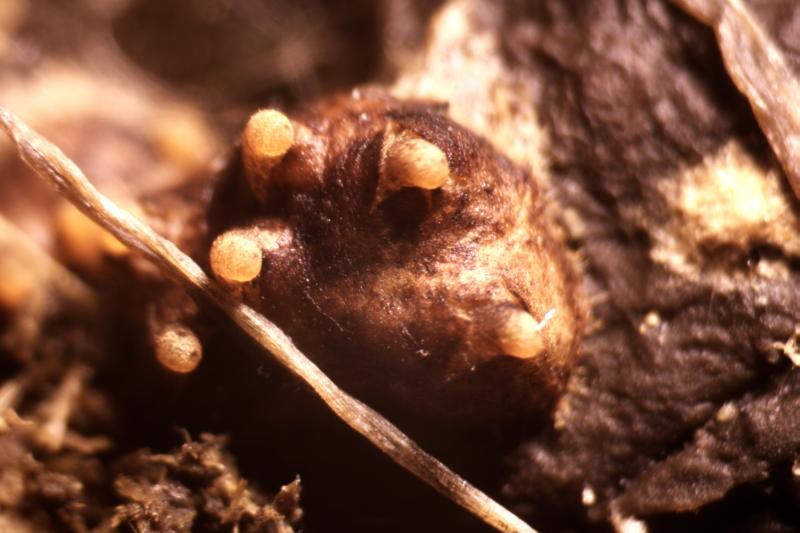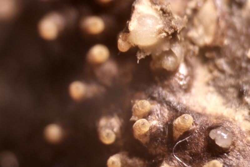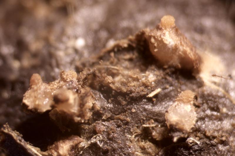 It appeared that the fruit bodies were hidden in the substance.